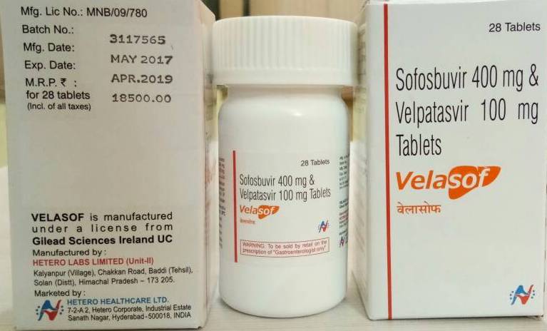 Комбинация выпускается индийской компанией Hetero под торговым названием Velasof. Речь идет о таблетках синего цвета овальной формы. На одной стороне таблеток присутствует маркировка «S21», на другой – «Н». Защитная оболочка покрывает внешнюю сторону оригинальных пилюль. Это необходимо для того, чтобы процесс растворение и последующего расщепления начался после попадания в кислую среду желудка. На самой коробке элементы голографической защиты отсутствуют.