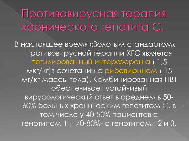 В настоящее время используют два вида противовирусной терапии против гепатита: