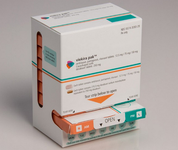 Министерство здравоохранения РФ приняло решение одобрить восьми недельный курс терапии препаратом Викейра Пак от компании AbbVie. В его состав входит комбинация омбитасвир/паритапревир/ритонавир, дасабувир, выпускаемые в таблетках. Его целесообразно использовать при хроническом генотипе С генотипа 1b без выраженного фиброза (по Metavir F3) и цирроза печени (по Metavir F4).